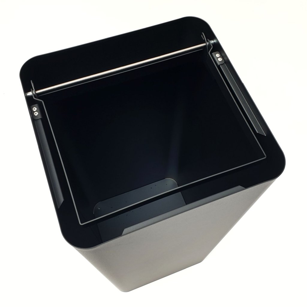 Krása italského designu je v jeho jednoduchosti a maximální funkčnosti.Nezbytnou součást ale je také použitý materiál - u řady Centolitri to je kvalitní ocel a speciální technologie nanášení barvy, která zajistí dlouhou životnost výrobku. Nádoba koše Centolitri má objem 100 litrů, což je naprosto dostačující i pro prostory s větším pohybem osob. Samotná nádoba v sobě ukrývá pytel na odpad a tento pytel se lehce upevní za pohyblivý rámeček, který je v horní části nádoby. Výměna plného pytle za nový prázdný je jednoduchá a rychlá a nezabare více něž několik vteřin. Díky hladkému povrchu je i údržba jednoduchá a snadná.