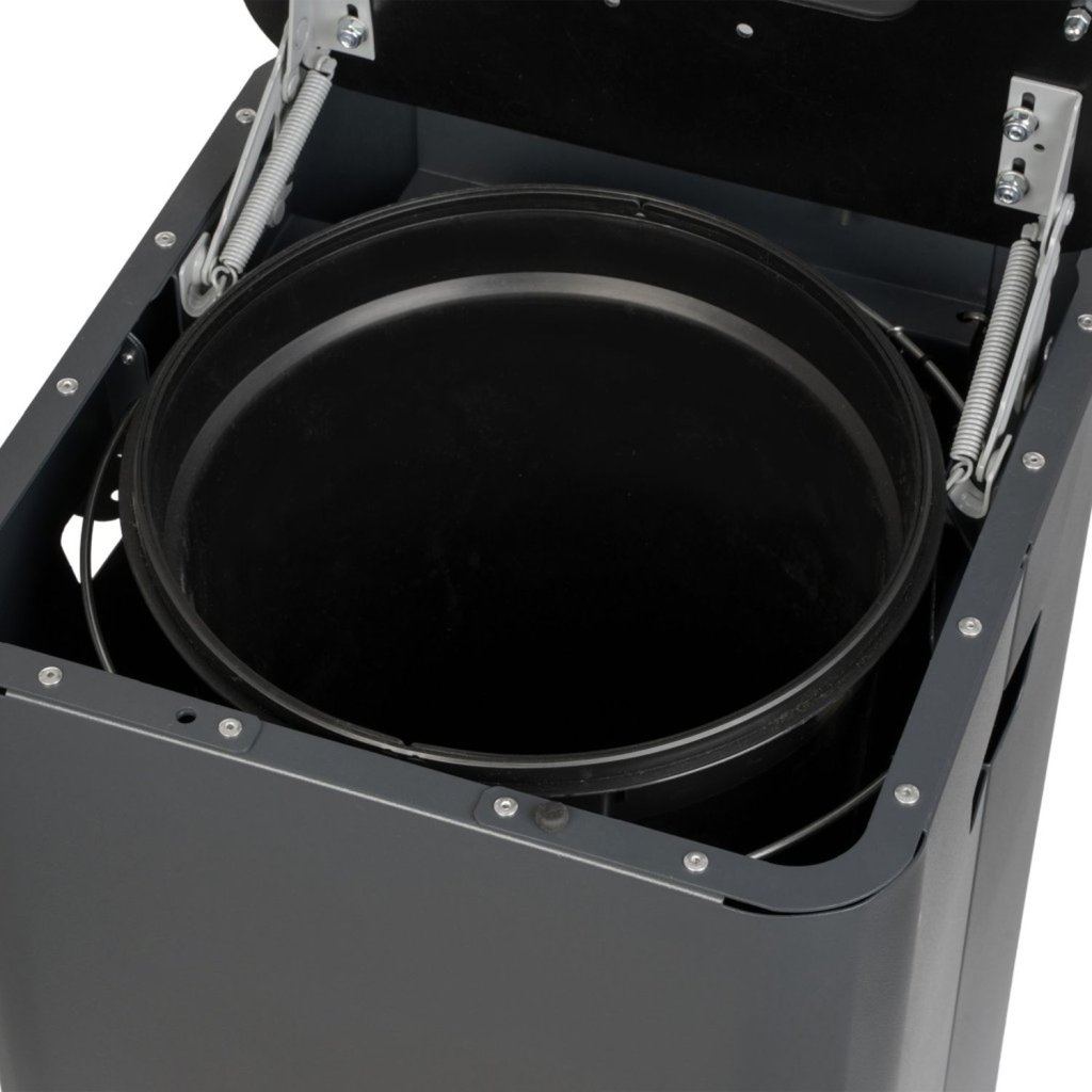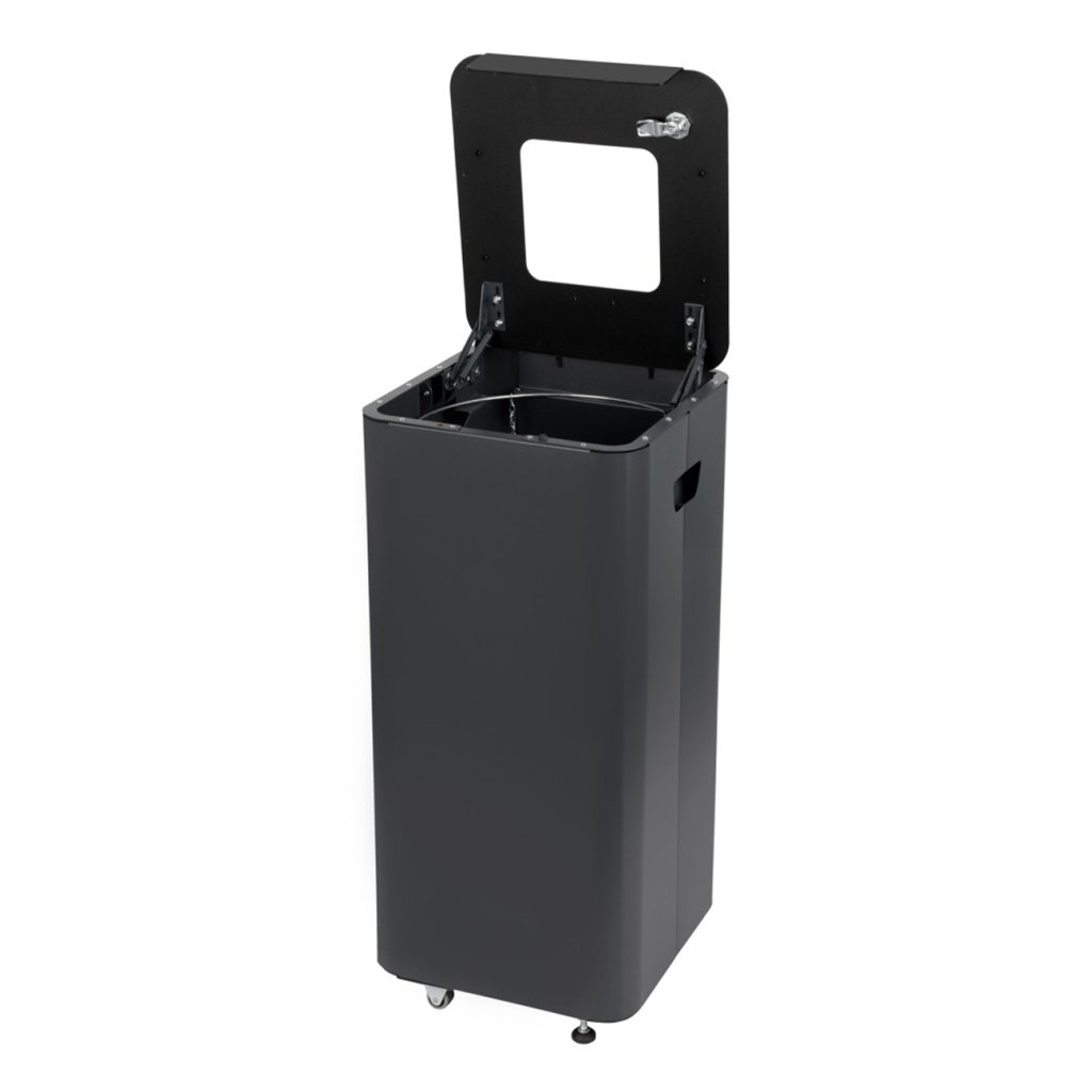 Kontejner je vybaven hladkým vnitřním povrchem pro snadné vyprazdňování bez poškození pytlů. Součástí každého koše je praktický držák na pytle, který zvyšuje hygienu a zabraňuje tak vysypání odpadu do prostoru koše. Díky robustní konstrukci a možnosti uzamčení je vhodný i do frekventovaných veřejných prostor.