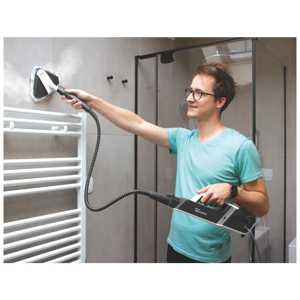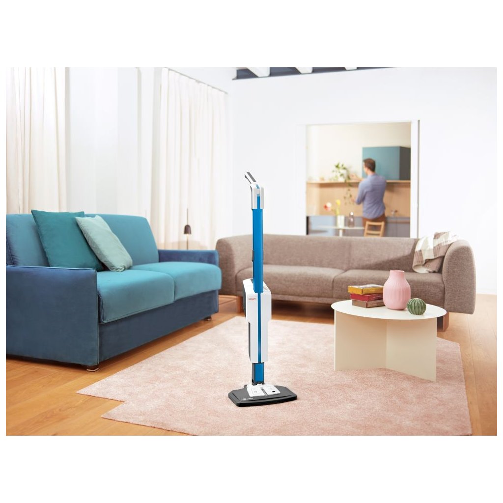 Duální provedení Vaporetto SV620 Style je kombinací parního mopu a parního čističe, se kterými vyčistíte až 15 různých povrchů. S parním mopem setřete podlahu, pak můžete odpojit spodní a vrchní část a s ručním čističem se můžete pustit třeba na čištění oken či radiátorů. Jeho obrovský potenciál využití daný velkým množstvím příslušenství vás překvapí. Čističem můžete čistit třeba spáry u dlažby či obkladů, záclony, sanitární zařízení, dřezy či umyvadla, ale také například pečící troubu či skvrny na koberci. A příjemným vedlejším efektem použití páry je desinfekce a tedy 99,99% eliminace mikrobů a plísní. Zásobník na vodu má objem 0,5 litrů a mop je 20 vteřin po zapnutí připraven pracovat. Díky hmotnosti 2,83 kg a 7,5 metru dlouhém přívodním kabelu je práce s ním lehká a příjemná.