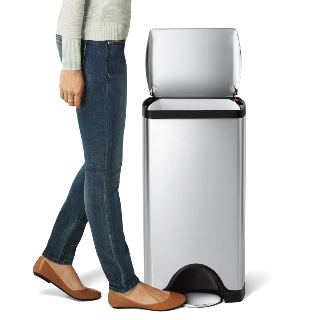Obdélníkový odpadkový koš se skutečně obřím objemem. Vejde se do něj až 30 litrů odpadu. Koš Simplehuman si poradí i s hrubším zacházením, neboť je vyroben z vysoce odolné oceli. Máte tak jistotu, že vám bude dlouho a dobře sloužit.
