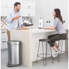 Pedálový odpadkový koš Simplehuman o objemu 45 litrů vyniká velmi tichým zavíráním díky speciálnímu nášlapnému mechanismu. Zaklapnutí víka u pedálového koše Simplehuman je tak tiché, že ho ani nezaregistrujete. Díky širokému ocelovému pedálu nikdy nešlápnete vedle. Povrch koše je ošetřený nanostříbrem, a tak koš zůstává hygienicky čistý i po letech užívání. Půlkulatý tvar je navržen s ohledem na jeho umístění - nebude překážet ani v malé kuchyni a díky designu Simplehumen bude moderním doplňkem vaší kuchyně.