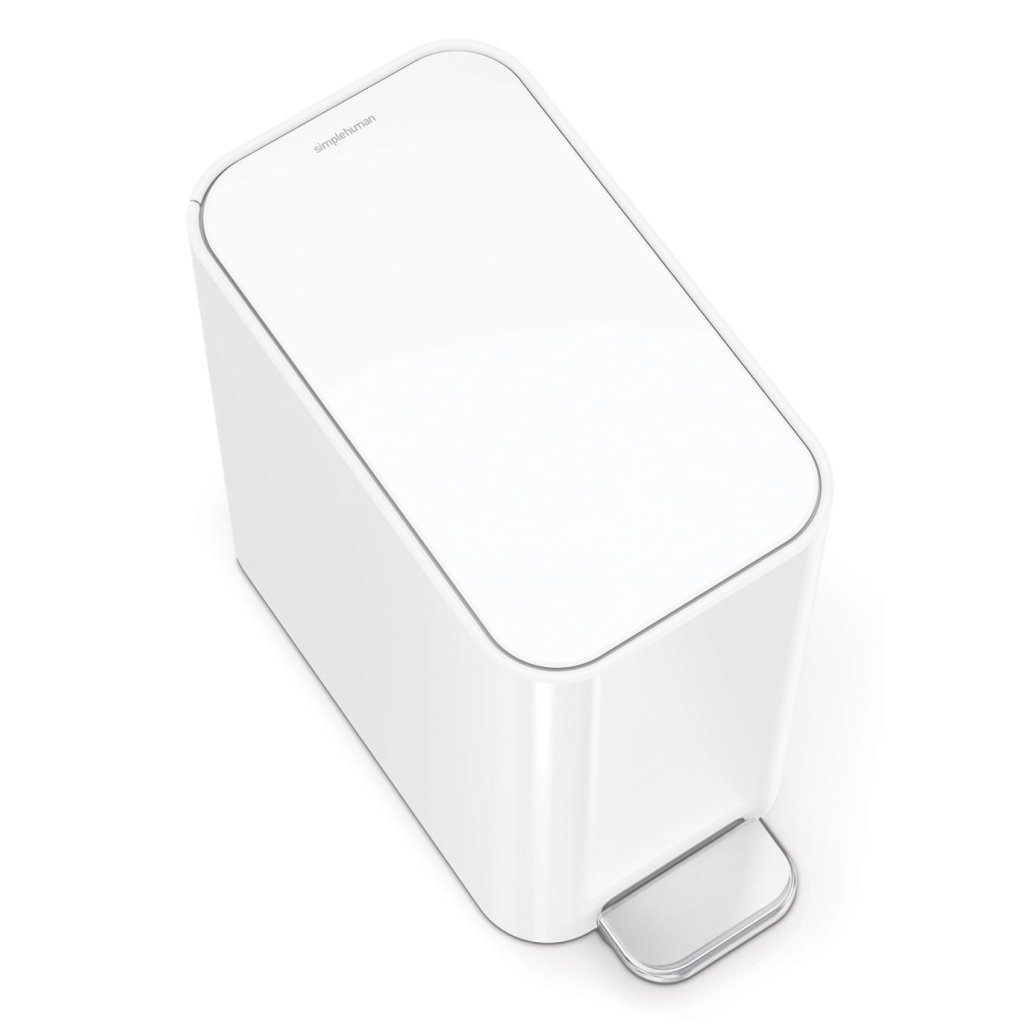 Pedálový úzký odpadkový koš Simplehuman – 5 l, bílá ocel