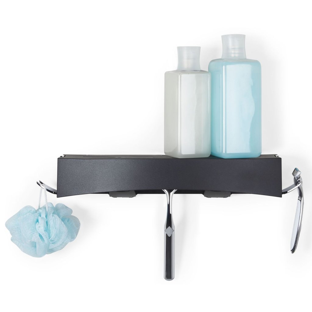 Polička do koupelny Compactor Clever Flip - systém upevnění bez vrtání,černá - chrom
