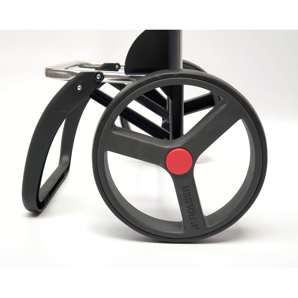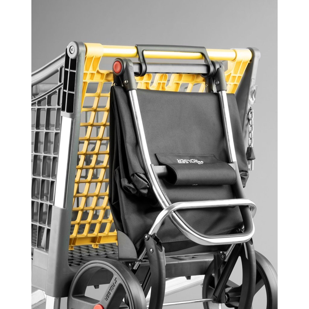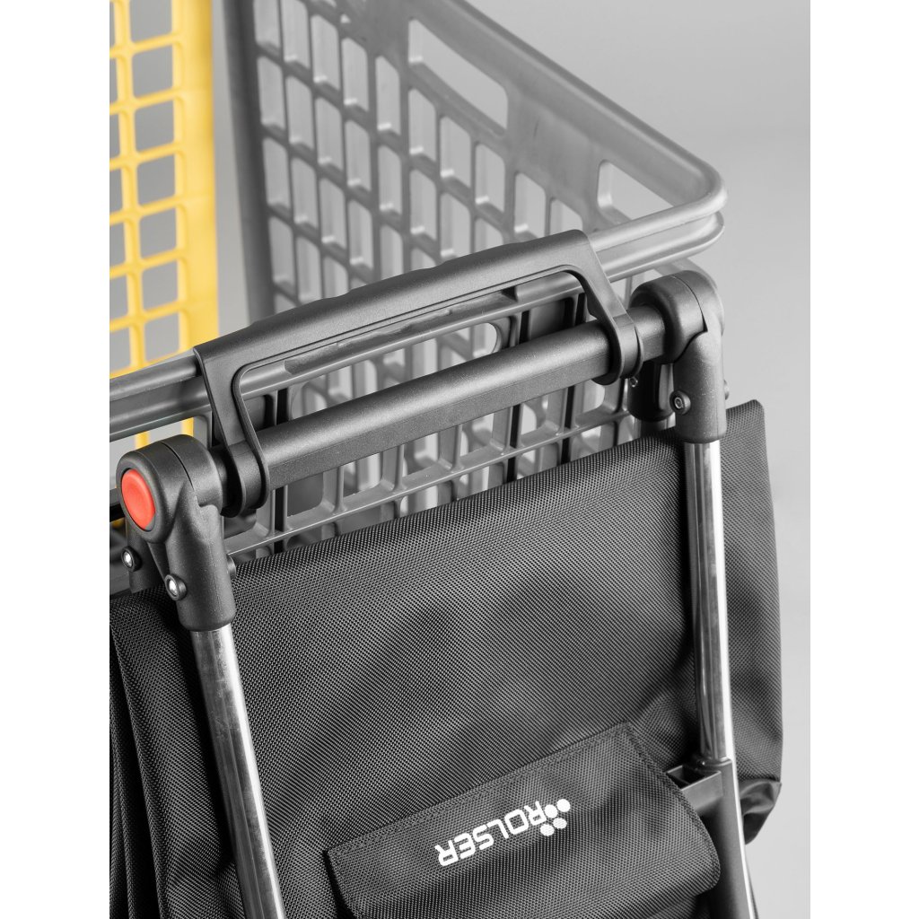 Mezi nejpraktičtější podvozky Rolser patří bezesporu Logic RSG, který vyniká hned několika užitečnými vlastnostmi. Tou hlavní je určitě dvojitý skládací systém, díky němuž lze složit nejen přední oporu, která slouží k odstavení tašky do prostoru, ale také samotnou konstrukci. Pomocí bočních ovladačů (červené body) se totiž snadno složí na polovinu a lze ji pak jednoduše uložit nebo převážet v autě. Dalším praktickým doplňkem je integrovaný úchyt, který slouží pro zavěšení tašky na nákupní vozík a není tak nutné tašku nikde odkládat. Úchyt je zároveň opatřem drobnými háčky, které při provozu slouží k zavěšení klasických tašek, sáčků apod. Ergonomické protiskluzové držadlo zajišťuje komfortní úchop a přispívá tak ke snadné manipulaci. Výška konstrukce 109 cm je vhodná i pro uživatele vyšší postavy.