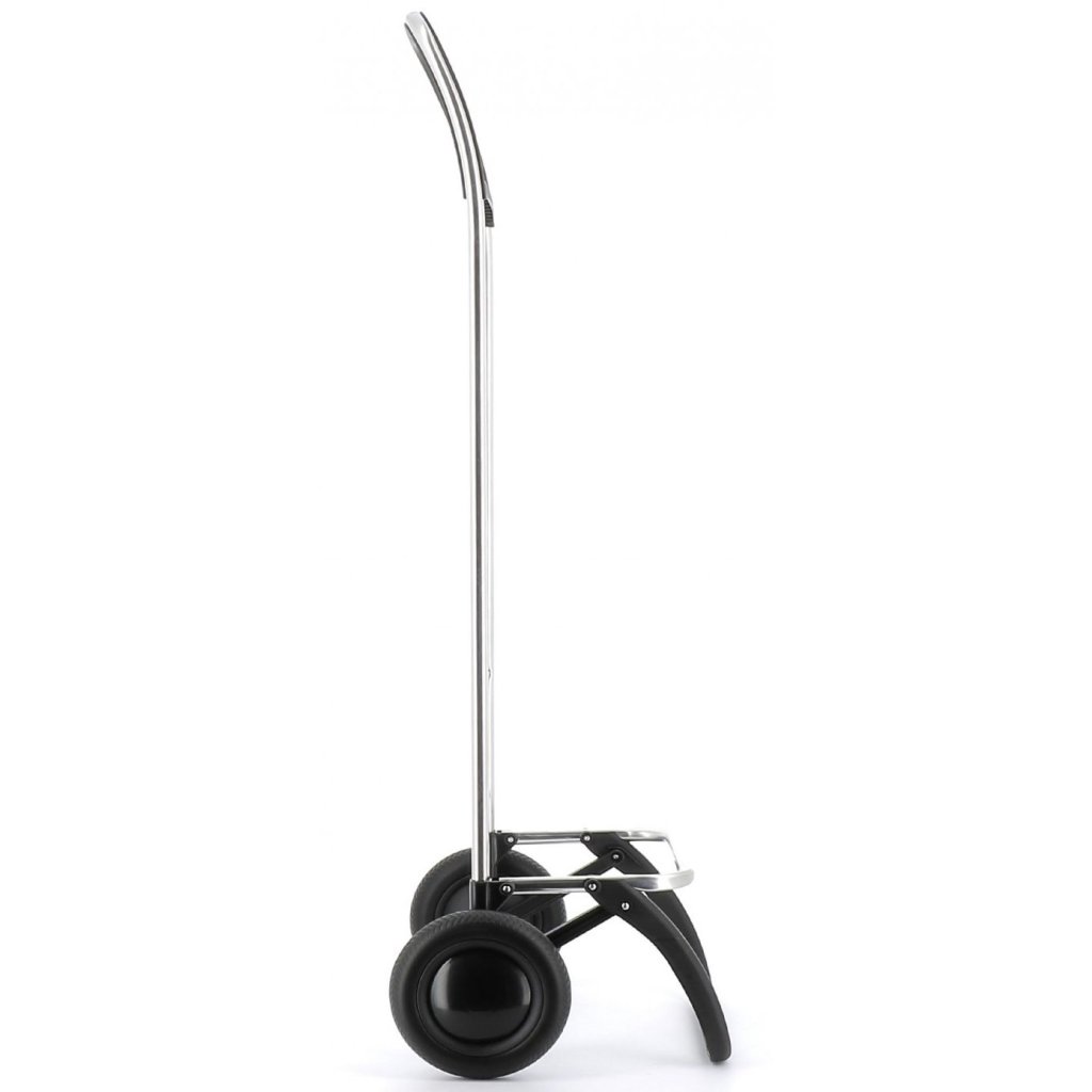 Extra lehký hliníkový podvozek s pevným rámem, je vybaven dvěma koly klasické velikosti a snadno se ovládá jednou rukou. Bez tašky váží pouhých 1,12 kg. Přední opora, která je nedílnou součástí podvozku, umožňuje tašku odstavit volně do prostoru. Zároveň ji lze jedním pohybem sklopit, čímž dosáhnete plochého tvaru tašky a snadno ji tak uložíte třeba za skříň. Ergonomické protiskluzové držadlo zajišťuje komfortní úchop a přispívá tak ke snadné manipulaci. Výška konstrukce 104 cm je vhodná i pro uživatele vyšší postavy.