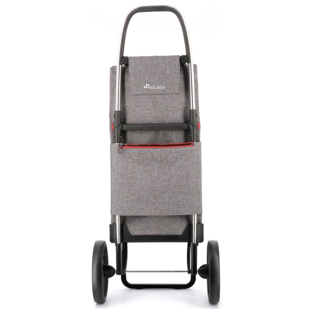 Mezi nejpraktičtější podvozky Rolser patří bezesporu Logic RSG, který vyniká hned několika užitečnými vlastnostmi. Tou hlavní je určitě dvojitý skládací systém, díky němuž lze nejen složit přední oporu, která slouží k odstavení tašky do prostoru, ale také samotný rám. Pomocí bočních ovladačů (červené body) se totiž snadno složí na polovinu a lze ho pak jednoduše uložit nebo převážet v autě. Dalším praktickým doplňkem tašky je integrovaný úchyt, který slouží pro zavěšení tašky na nákupní vozík. Úchyt je opatřen několika drobnými háčky, na které lze zavěsit běžnou nákupní tašku, tedy v případě, že úchyt zrovna nevisí na nákupním vozíku. Ergonomické protiskluzové držadlo zajišťuje komfortní úchop a přispívá tak ke snadné manipulaci. Výška konstrukce 108 cm je vhodná i pro uživatele vyšší postavy.