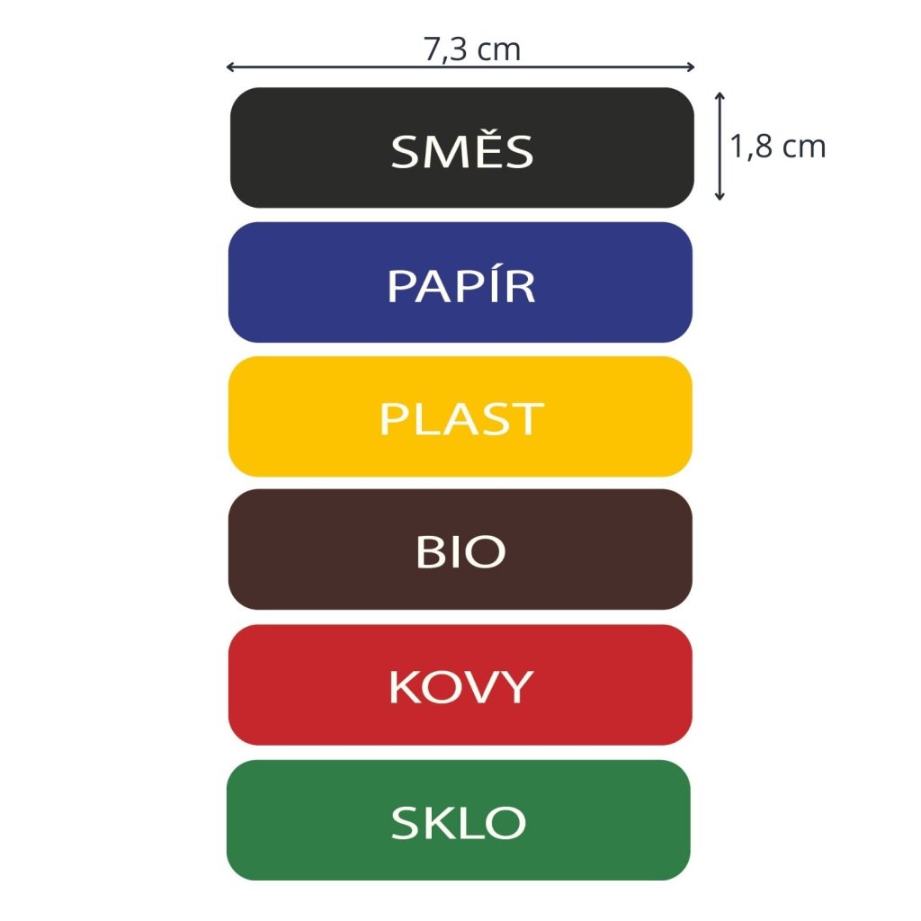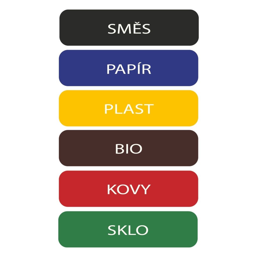 - sada 6 samolepek pro tříděný odpad – směsný odpad, papír, plast, bio, kovy a sklo