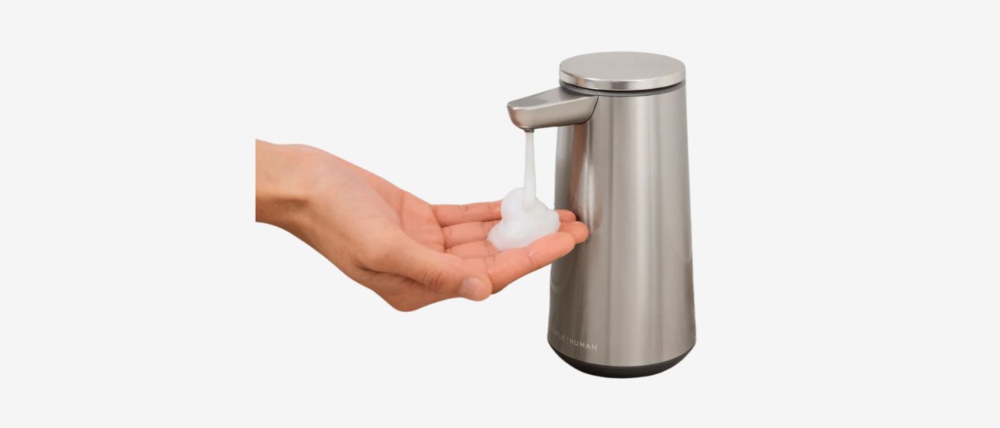 Simplehuman bezdotykový dávkovač mýdlové pěny - 296 ml, bílá ocel, dobíjecí