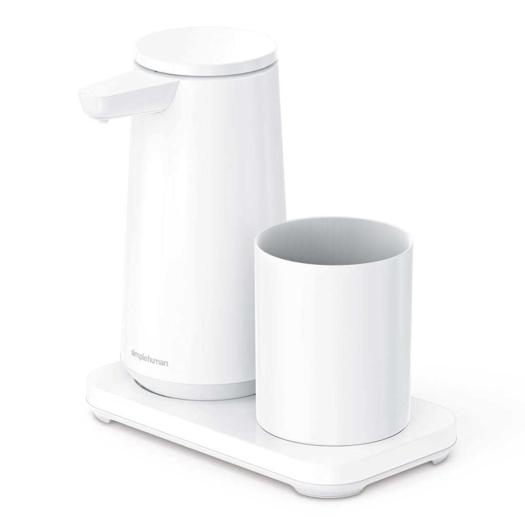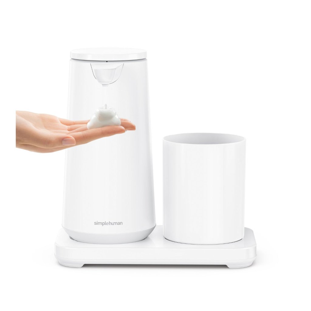 Simplehuman bezdotykový dávkovač mýdlové pěny - 296 ml + kelímek, bílá ocel, dobíjecí