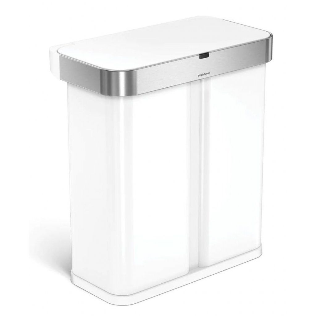 Simplehuman bezdotykový koš s hlasovým ovládáním,tříděný odpad,58L, bílá ocel, ST2038
