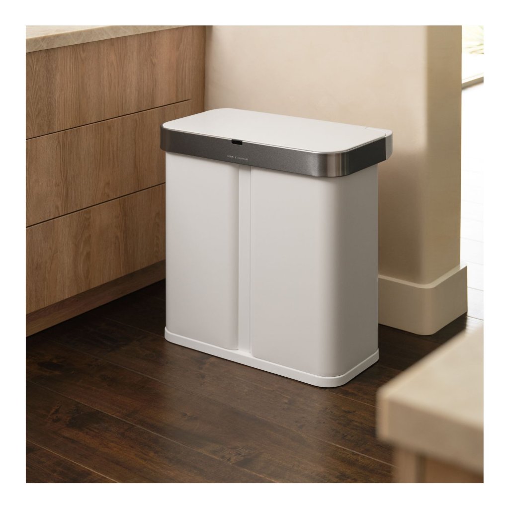 Simplehuman bezdotykový odpadkový koš DUAL SENSOR, 58 L (34/24), hlasové ovládání, bílý