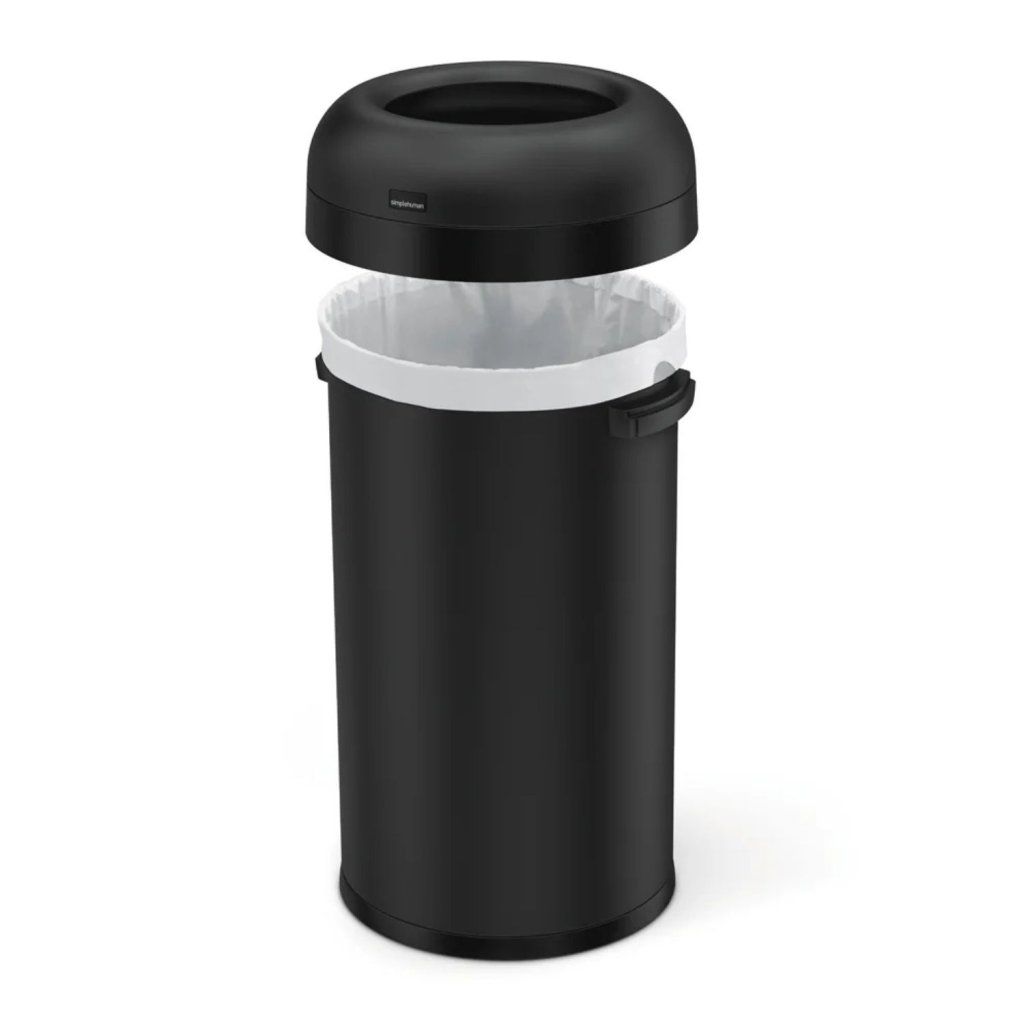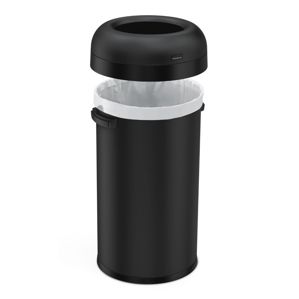 Simplehuman otevřený odpadkový koš do veřejných prostor, 60 L, kulatý, matná černá ocel