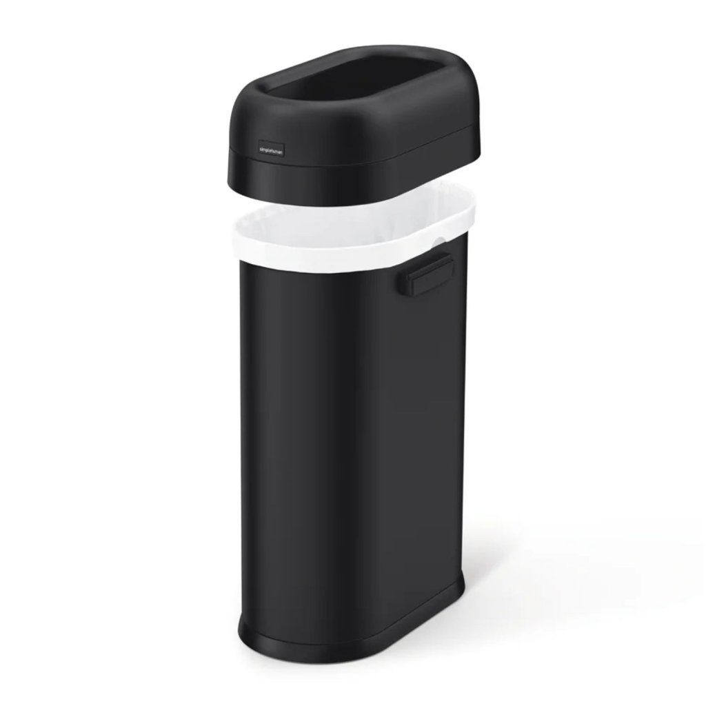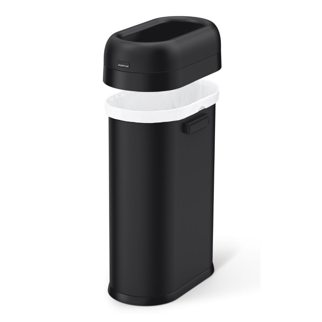 Simplehuman otevřený odpadkový koš do veřejných prostor SLIM, 50 L, ovál, matná černá ocel
