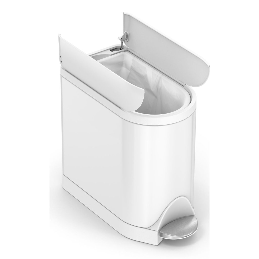 Simplehuman pedálový odpadkový koš do koupelny, 10 L, butterfly víko, bílá ocel