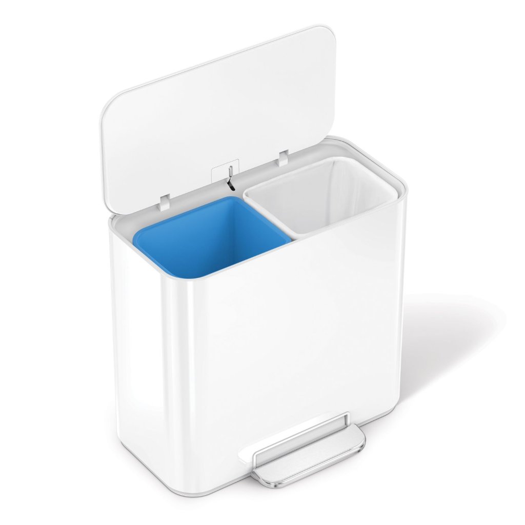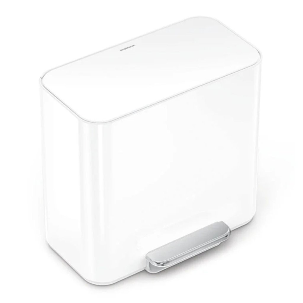 Simplehuman pedálový odpadkový koš na tříděný odpad DUAL MINI, 15 L, bílá ocel