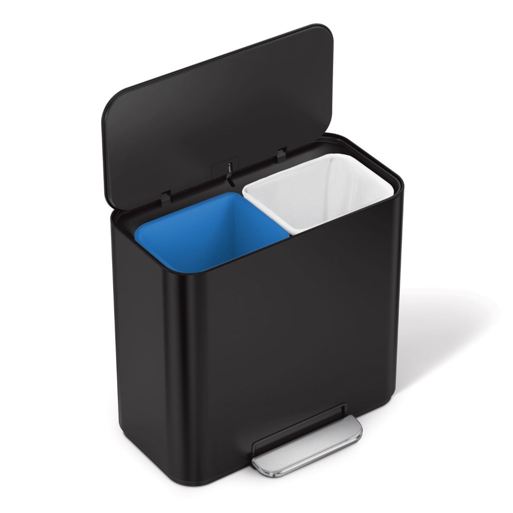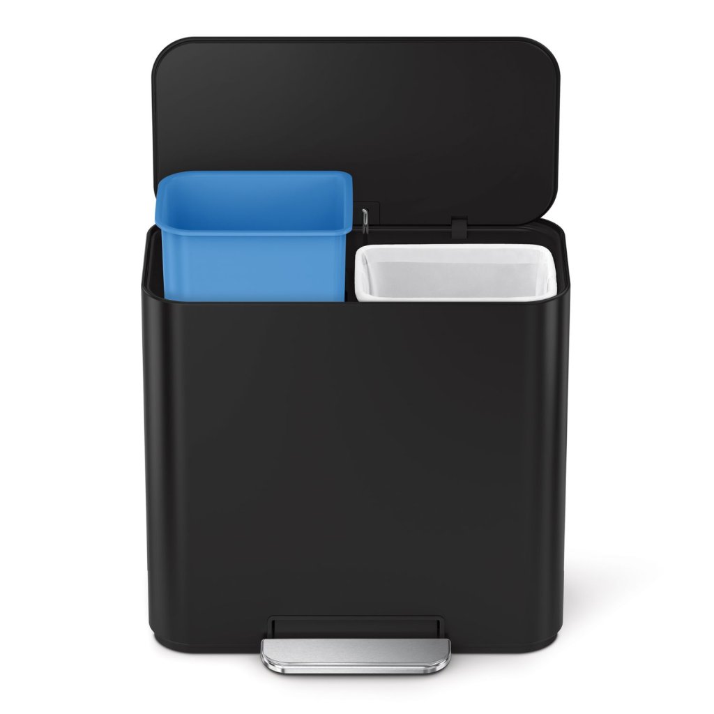 Simplehuman pedálový odpadkový koš na tříděný odpad DUAL MINI, 15 L, matná černá ocel