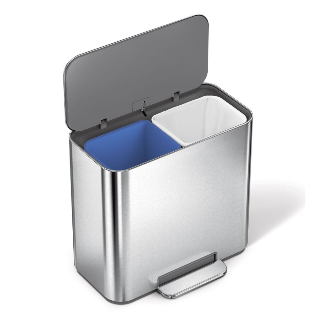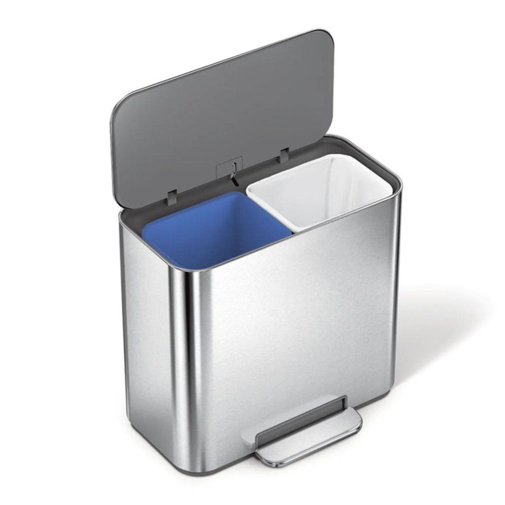 Simplehuman pedálový odpadkový koš na tříděný odpad DUAL MINI, 15 L, nerezová ocel