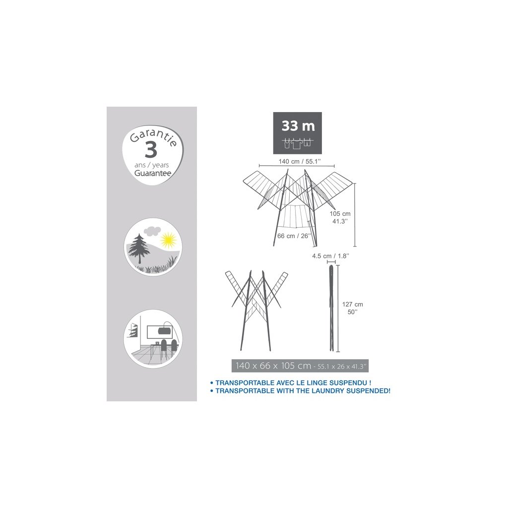 - až 33 m sušicí plochy – pohodlně usuší i velké množství prádla najednou