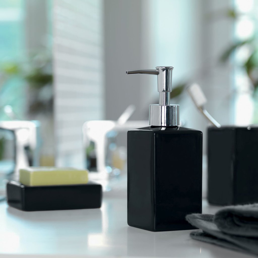 Spirella dávkovač mýdla QUADRO, černý, keramika, 300 ml