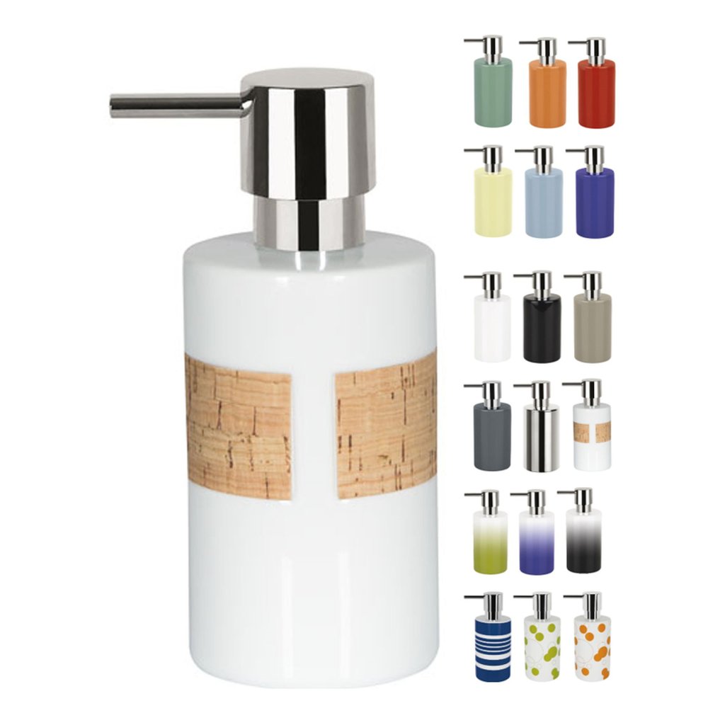 Spirella dávkovač mýdla TUBE Nature, bílý porcelán, korek, 300 ml