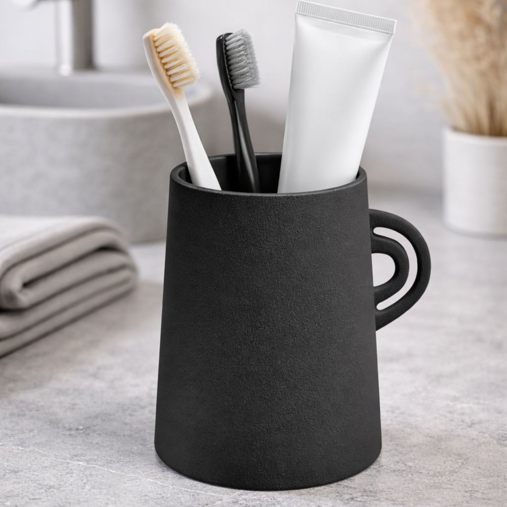 Spirella kelímek na zubní kartáčky ORGANIC, matně černý, keramika