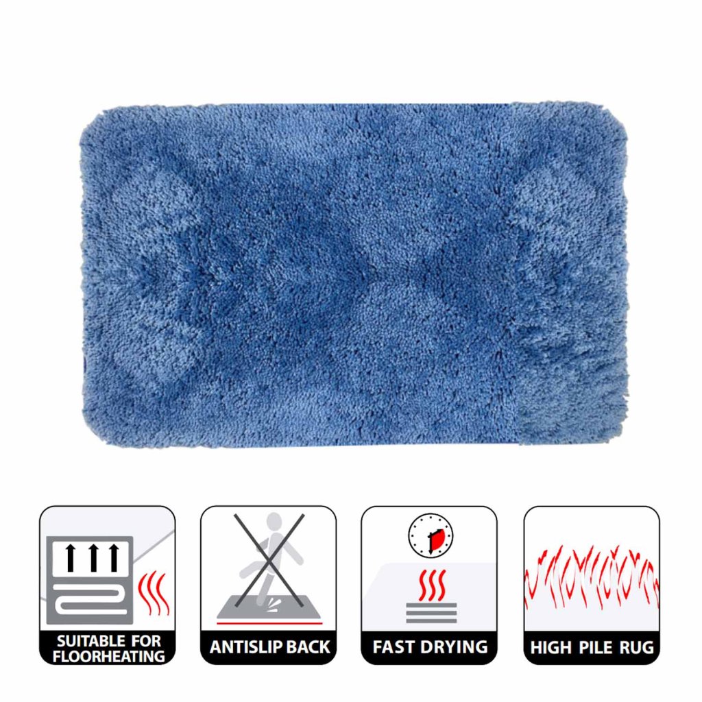 Spirella koupelnová předložka HIGHLAND, vysoký vlas, modrá, mikrovlákno, 60 x 90 cm