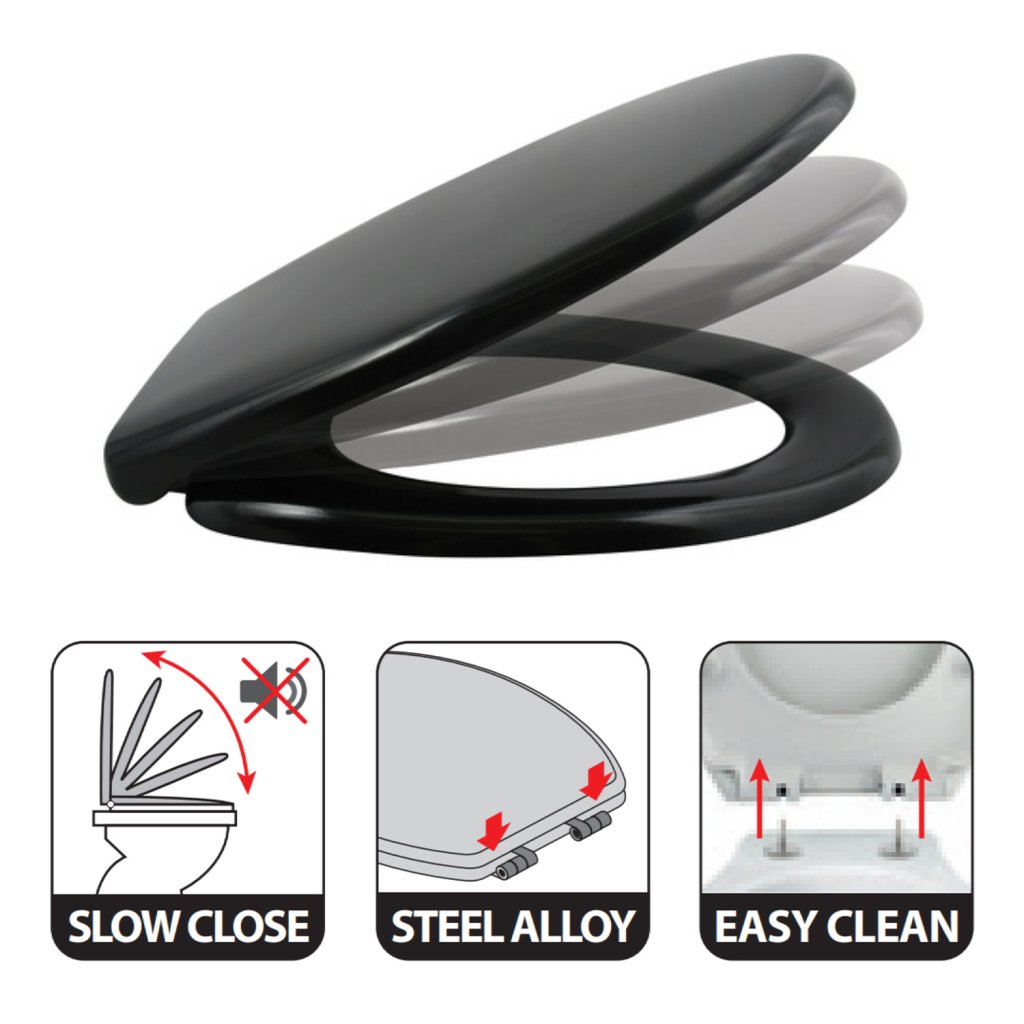Spirella WC prkénko EASY CLIP, černé, duroplast Thermodur