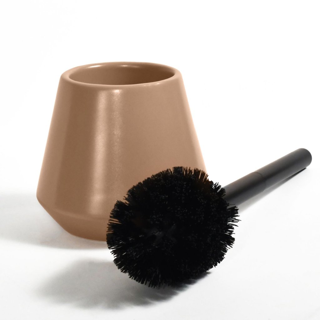 - WC štětka ze série JOSHUA s béžovou keramickou nádobou a černou rukojetí.