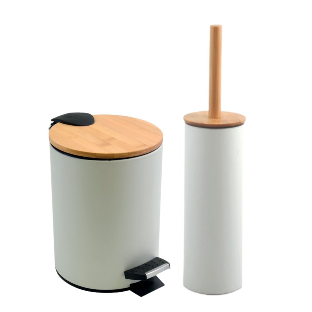 Spirella WC štětka s kovovou nádobou ADONIS, matná bílá, ocel, bambus