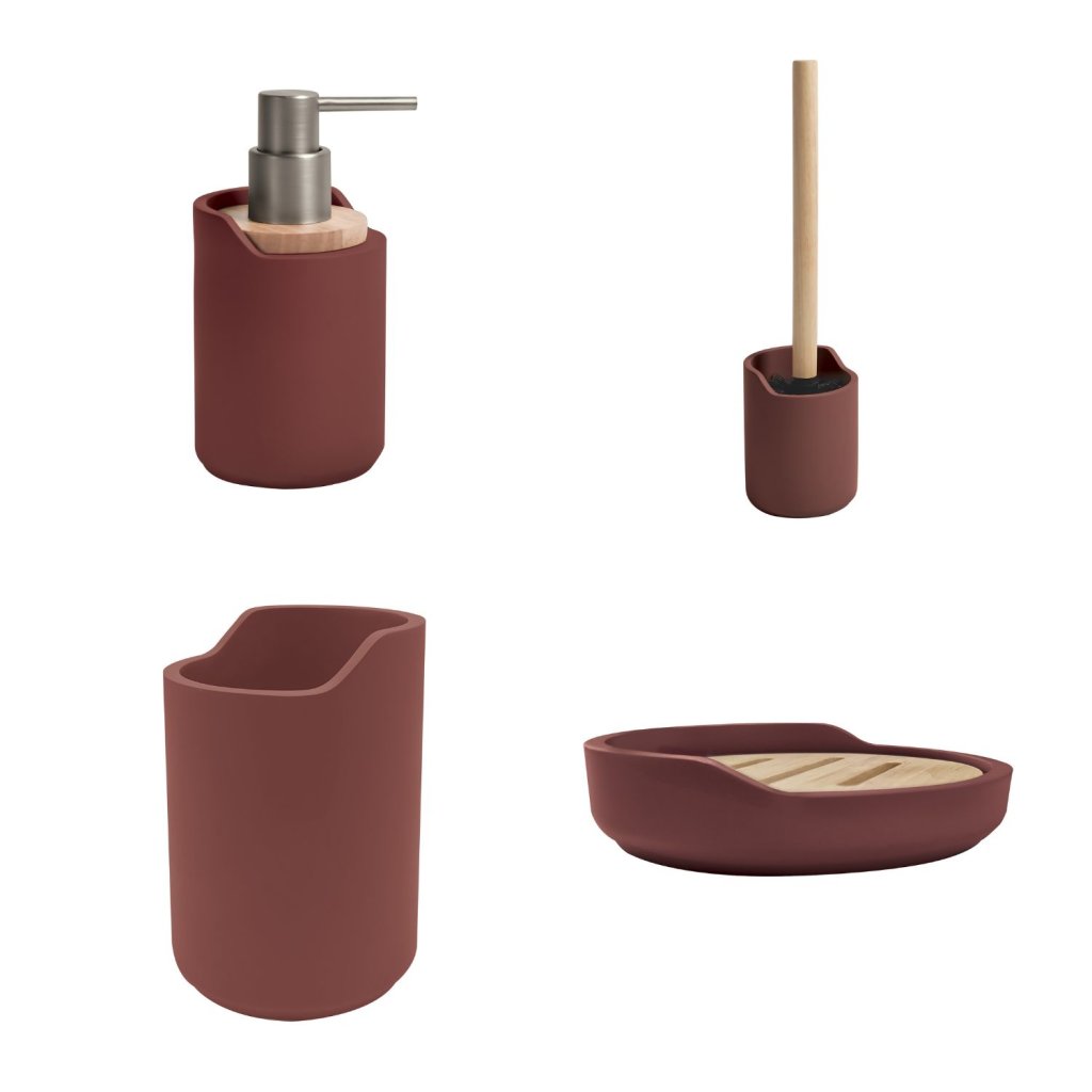 WC štětka Sybella od značky Spirella v karmínově červeném odstínu dodá vaší koupelně energii, styl a osobitý charakter. Kombinuje matně zbarvenou polyresinovou nádobu s přírodní dřevěnou rukojetí, což vytváří harmonické spojení moderního designu a teplých přírodních prvků.