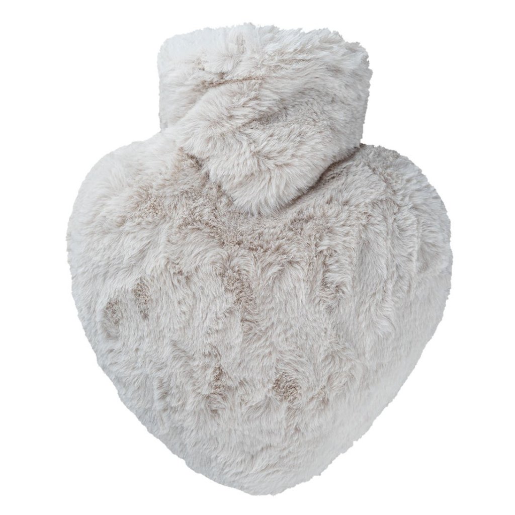 Termofor Hugo Frosch s obalem z umělé kožešiny - srdce, taupe-stříbrná
