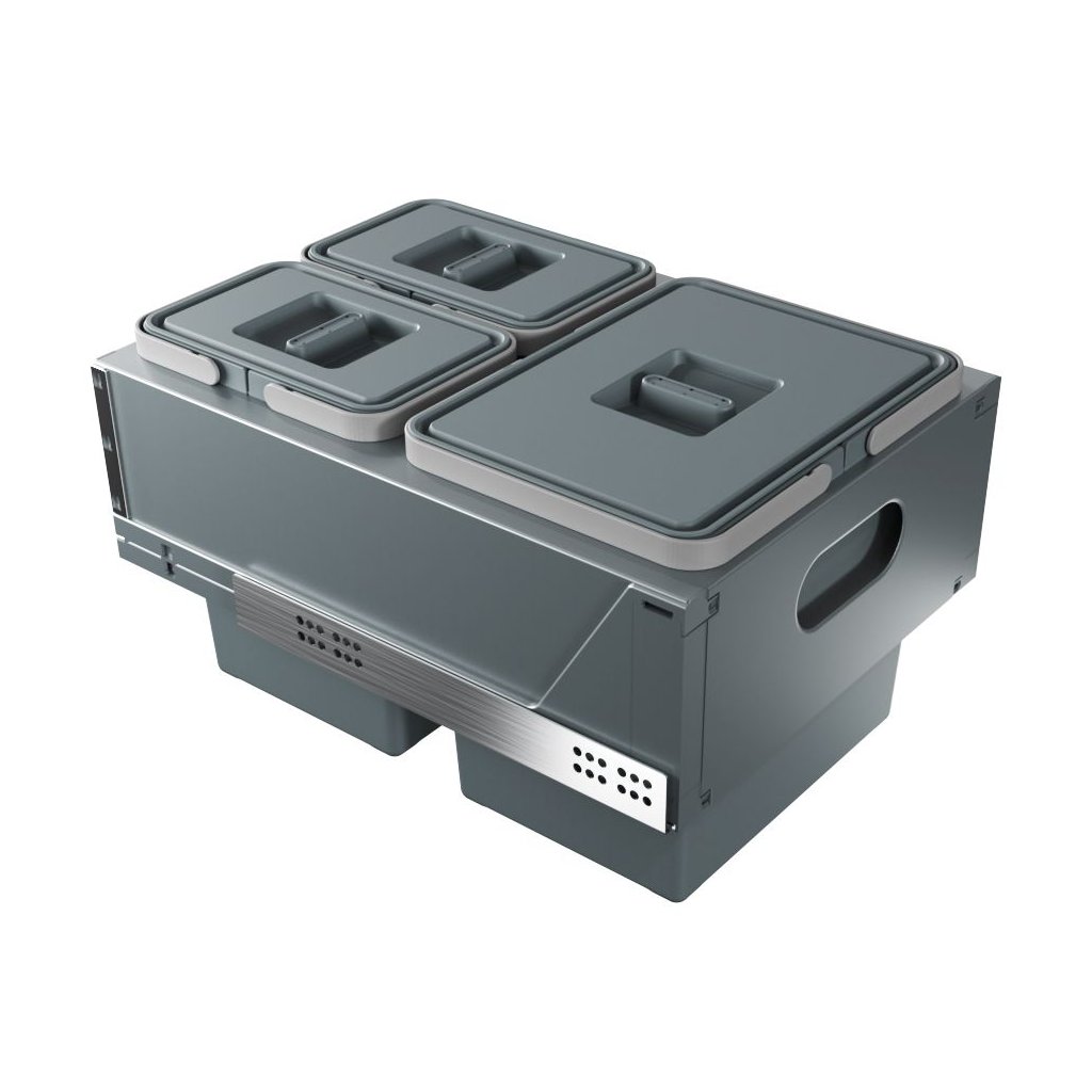 Základní konstrukce koše (rám) je vyrobena z extremně pevného materiálu - pozinkovaná ocel práškově lakovaná s příměsí epoxidu. Samotné ocelové pojezdy značky Hettich mají podpěry ze skelných vláken a velmi dlouhou životnost. Samotné nádoby na odpad včetně vík, jsou vyrobeny z kvalitního a plně recyklovatelného materiálu.