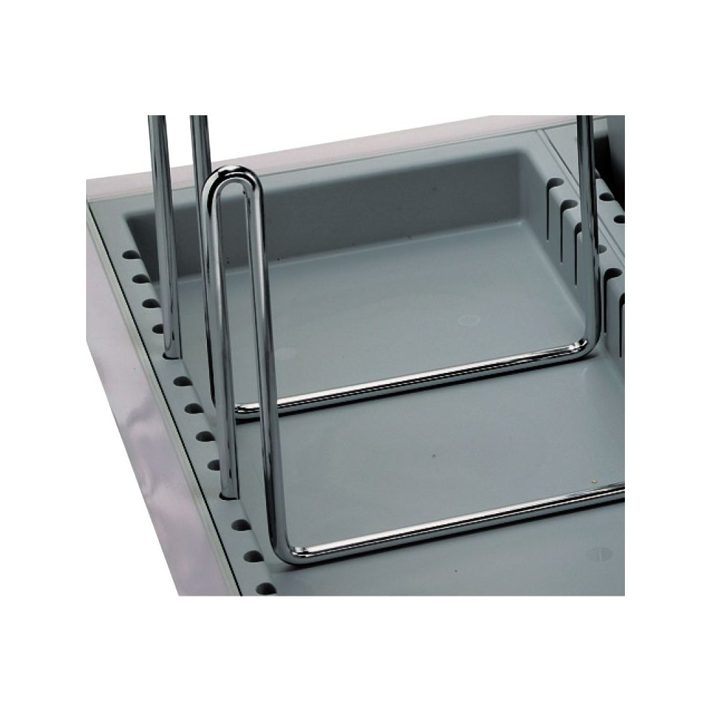 Typovou řadu košů Metropolis lze rozšířit o různé chromované drátěné držáky nebo stojany plastových misek, které lze například použít pro čistící prostředky či třeba tablety do myčky. Umístění těchto předmětů v blízkosti košů je praktické a také se vyhnete stavu, kdy tyto chemické prostředky jsou v blízkosti potravin