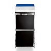 V masivní ocelové konstrukci jsou vloženy dva kontejnery na odpad. Větší je určený pro klasický domácí odpad. Za ním najdete modrý kontejner, který můžete použít pro recyklaci plastu, papíru či skleněných lahví.